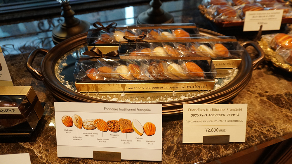 「ミニャルディーズ」の方は、オリジナリティに富んだプティ・フール5種入り、「フリアンディーズ」の方は“フランスの伝統的なおやつ”がコンセプトのプティ・フール7種8個入り。マドレーヌやヴィジタンディーヌ、パンデピスや南仏のカリソンなども入っていますね。