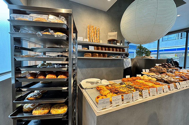 お店のコンセプトは“身体に優しい食と空間”。次世代の子どもたちにも安心して食べてもらえるよう、素材選びに徹底してこだわっています。自然光がやわらかく差し込み、提灯が印象的な店内は、和のぬくもりと上質な心地よさが共存する空間です。パンはスタッフの方に取ってもらう対面スタイルで、自然と会話が生まれ、優しい接客もこの店の魅力のひとつです。