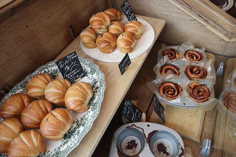 「“ごきげん”は、まわりの人にも伝播します。お客様にはお買い物をする間のわずかな時間でも、五感で焼き菓子のある空間を楽しんでいただきたいです。街の人たちに“ごきげん”が広がっていくことに少しでも貢献できたらよいな、と願ってパンや焼き菓子をつくっています」(清水さん)。
